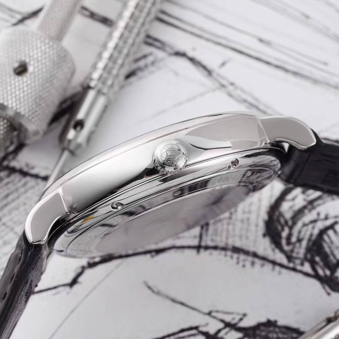 AI Wave True Moon Phase Jumps One Small Grid per Day, Walks One Circle per Month, Synchronizes Authentic Features. IWC launches the new Wave Fino series 40mm Moon Phase Precision Steel Mechanical Men’s Watch IW459401, IW459402. The moon phase display is undoubtedly the most dreamy and beautiful among all complex functions. It is designed as a starry night sky, with the moon and stars seemingly suspended in the boundless sky. The phases of the moon are presented to people in different scenes – sometimes the moon flashes in the clouds, sometimes hovering under the starry night sky. The willow leaf shaped hands outline the charm of time in an elegant manner. The newly customized version of the original imported fully automatic mechanical movement is precise, stable, and durable. The watch features a beautifully designed dome shaped sapphire crystal glass mirror, which is treated with double-sided anti glare to steal clear light. The rounded edges of the watch exude an elegant atmosphere. The side of the crown is decorated with simple triangular grooves, combined with a relatively prominent crown design, providing a very comfortable feel for winding. The stainless steel case has a rounded and exquisite shape, and its slightly curved ears conform to ergonomics, fitting snugly to the wrist and comfortable to wear. The Portofino watch series has always been a humble gentleman in the international family, a perfect embodiment of reserved temperament and elegant taste. It has become one of the best-selling watch series of IWC with its simple and timeless design, and is highly favored by both men and women. The combination of precise performance and unique design by Wanguo presents us with a magnificent visual experience.